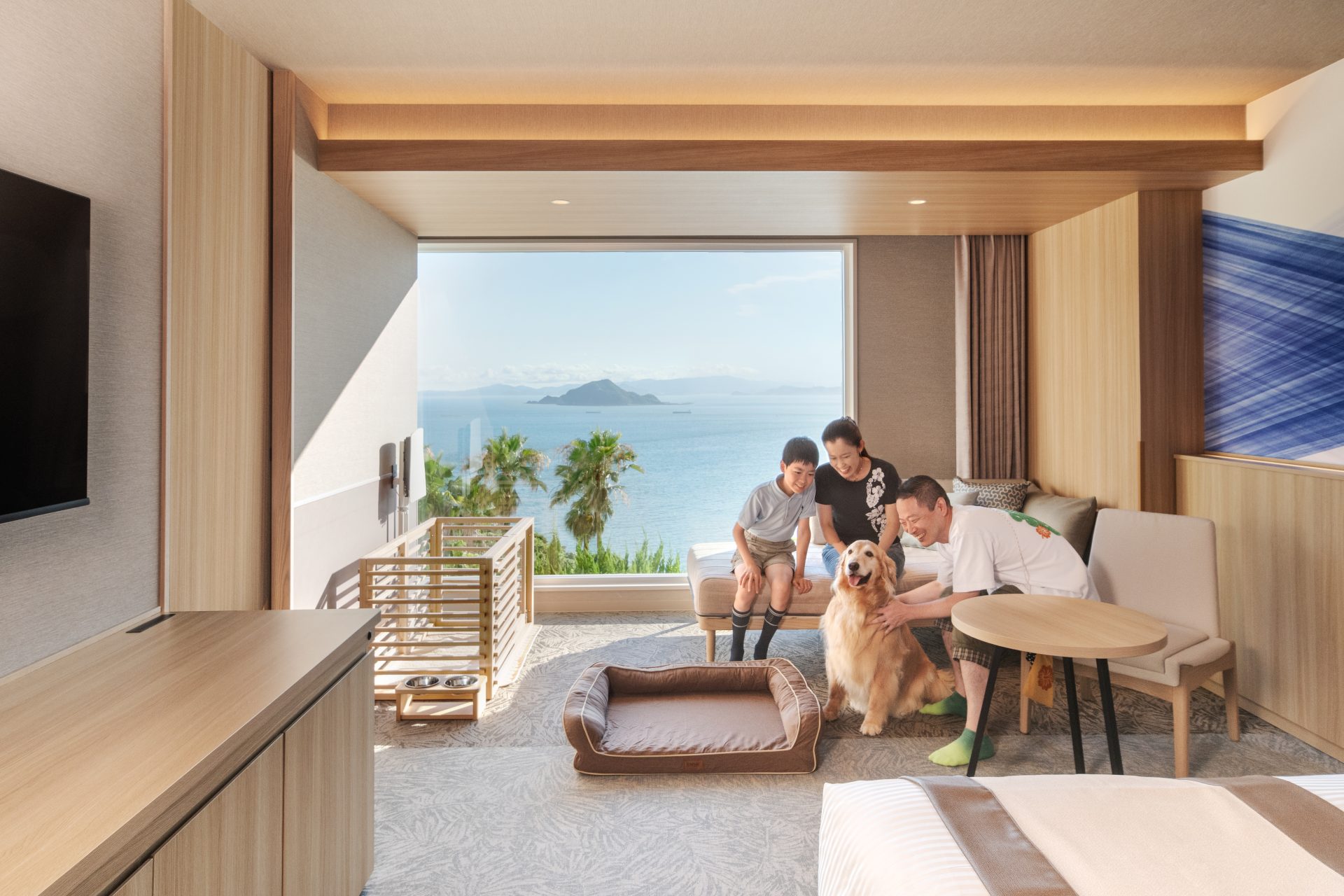 2025年7月に愛犬にも飼い主にも嬉しいこだわり仕様の『ドッグフレンドリールーム』が新登場! ワンちゃん用アメニティのほか、2026年7月24日までの宿泊で、ROOTOTEさんとコラボしたホテルオリジナル「お散歩バッグ」をプレゼント中♪ 473㎡の天然芝ドッグパークは大型犬から小型犬まで思いっきり遊べます。